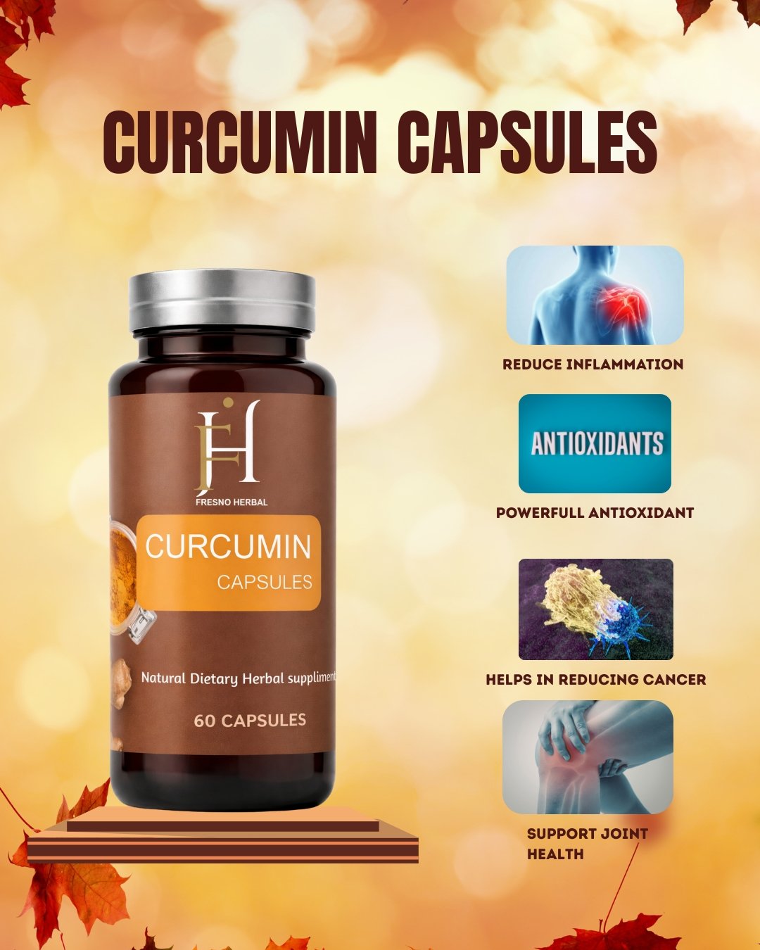 Curcumin Capsules are dietary supplements designed to leverage the powerful benefits of turmeric's active ingredient, curcumin. These capsules provide potent anti-inflammatory and antioxidant properties, which support overall health and wellness. Regular use of Curcumin Capsules can help reduce inflammation, boost immune function, and promote joint health. By incorporating these capsules into your daily routine, you can enjoy the natural healing benefits of curcumin, contributing to a healthier and more balanced lifestyle. hello